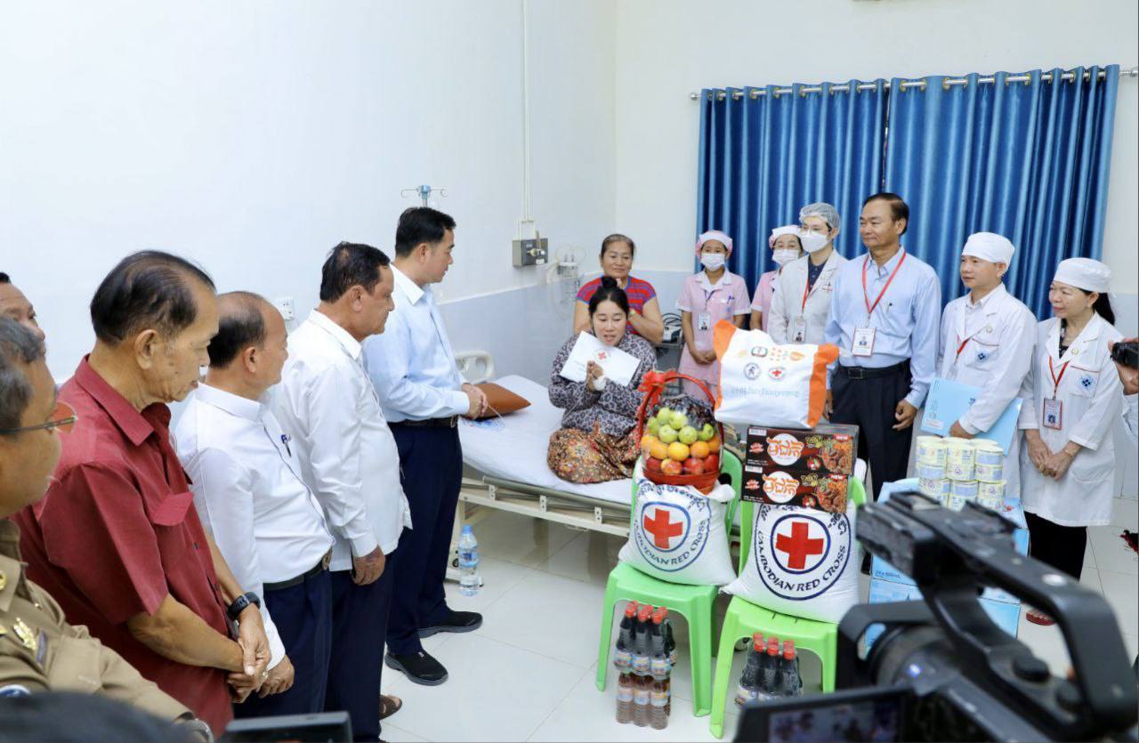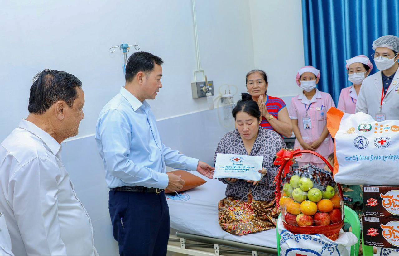 នៅព្រឹកថ្ងៃចន្ទ ទី១១ ខែសីហា ឆ្នាំ២០២៥ នេះ  ឯកឧត្តម អ៊ុន ចាន់ដា អភិបាលខេត្តកំពង់ចាម និងជាប្រធានគណៈកម្មាធិការសាខា កាកបាទក្រហមខេត្ត រួមដំណើរដោយ ឯកឧត្តម ខ្លូត ផន ប្រធានក្រុមប្រឹក្សាខេត្ត ឯកឧត្តម នាយកសាខា ប្រធានមន្ទីរសុខាភិបាលនៃរដ្ឋបាលខេត្ត  ប្រធាន អនុប្រធានមន្ទីរពេទ្យ បានអញ្ជើញចុះសួរសុខទុក្ខ លោកស្រី ជា មួយលាភ អាយុ៣៥ឆ្នាំ ជាភរិយាយោធិនជួរមុខទិសមុំបី បានភៀសសឹកពី ភូមិសែនរុងរឿង១ ឃុំទឹកក្រហម ខេត្តព្រះវិហារ ដែលបានត្រៀមសម្រាលកូន នៅមន្ទីរពេទ្យបង្អែកខេត្តកំពង់ចាម។