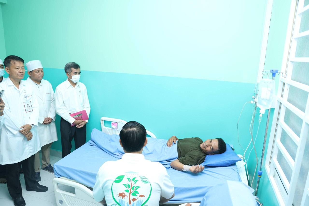 ខេត្តពោធិ៍សាត់៖ ឯកឧត្តម ខូយ រីដា អភិបាលខេត្តពោធិ៍សាត់ និងក្រុមការងារ នៅថ្ងៃអង្គារ ទី២៦ ខែសីហា ឆ្នាំ២០២៥នេះ ឆ្លៀតឱកាសមុនចូលរួមពិធីបុណ្យរុក្ខទិវា បានអញ្ជើញចុះសួរសុខទុក្ខកម្លាំងយោធាជួរមុខម្នាក់ នៃវីរសេនាតូចស៊ើបការណ៍ ឈរជើងនៅចំណុចអានសេះ ខេត្តព្រះវិហារ ដែលមានបញ្ហាសុខភាព ពុលផ្សែងគីមី មានអាការចុកដើមទ្រូង ទន់ដៃជើង កំពុងសម្រាកព្យាបាល នៅមន្ទីរពេទ្យបង្អែកពោធិ៍សាត់ ដោយទទួលបានការយកចិត្តទុកដាក់បំផុតពីសំណាក់ក្រុមគ្រូពេទ្យ។
